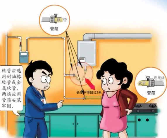 夏季高溫會加劇膠管老化,產(chǎn)生膠管龜裂。容易產(chǎn)生燃?xì)庑孤┎蛔灾?。日常生活中定期用肥皂水涂抹在燃?xì)饽z管上的方法來檢測膠管是否冒泡,如有冒泡則為漏氣點(diǎn),及時進(jìn)行更換金屬波紋管,金屬波紋管抗老化、耐腐蝕、耐高溫、防鼠咬,安全系數(shù)更高。