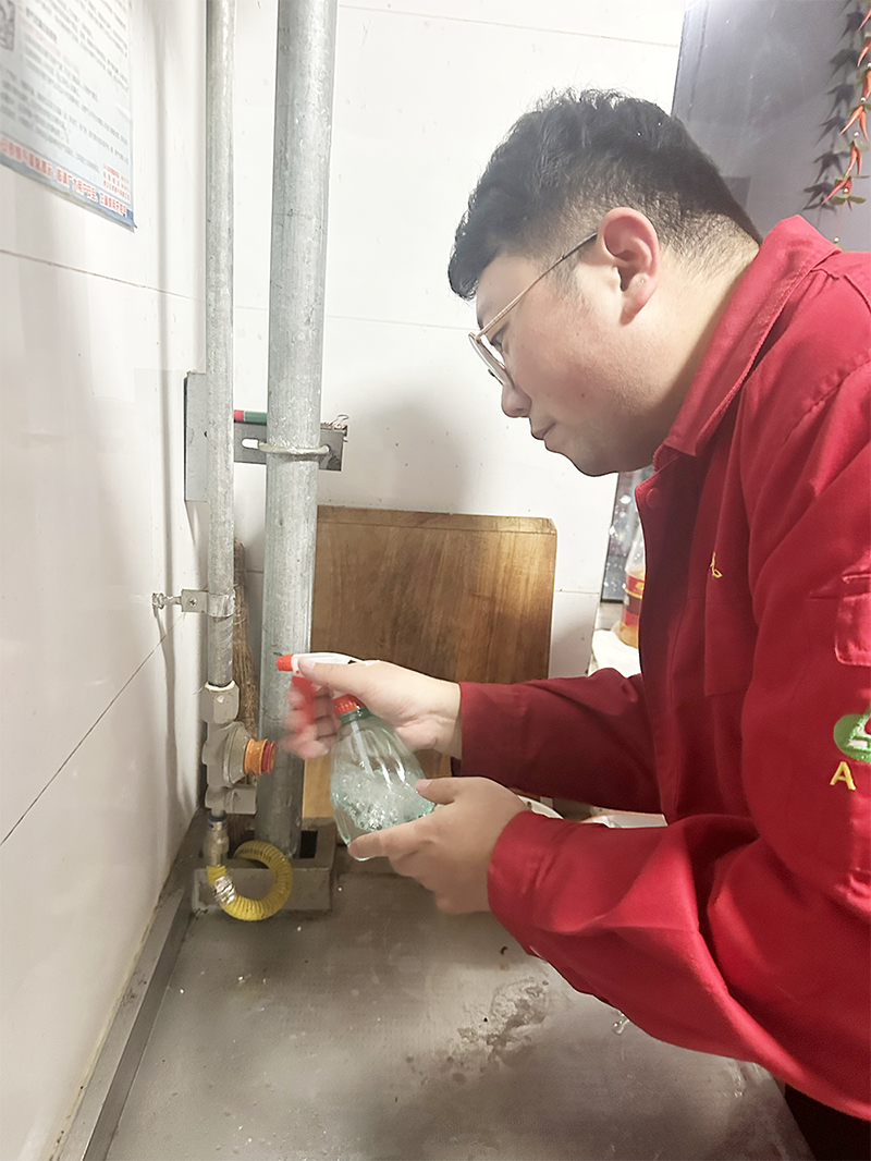 3.日常可用肥皂水或洗潔精水噴涂在燃?xì)夤艿赖慕宇^、閥門及燃?xì)忾_關(guān)等連接處進(jìn)行自檢自查,若有冒泡,則說明有漏氣。