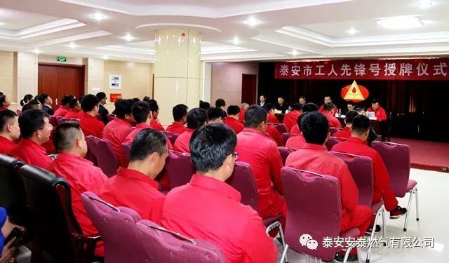 2018年4月28日上午,“泰安市工人先鋒號”授牌儀式在安泰燃?xì)夤救龢菚h室舉行。泰安市總工會常務(wù)副主席鞏華仁、副主席陳長舉、生產(chǎn)部部長王蕾、泰山玻纖副總經(jīng)理、安泰燃?xì)舛麻L趙恒剛、泰山玻纖工會主席王吉俊、工會副主席趙麗出席此次授牌儀式。安泰燃?xì)馊w管理人員以及所有不當(dāng)班員工參加了授牌儀式。儀式由安泰燃?xì)恻h支部書記、常務(wù)副總佟慶主持。