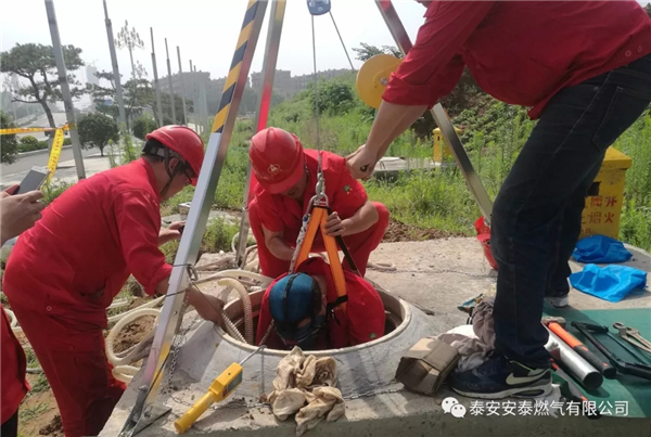 為加強(qiáng)燃?xì)庠O(shè)施突發(fā)事件應(yīng)急反應(yīng)能力和事故處置能力,檢驗(yàn)安泰燃?xì)鈸屝揸?duì)伍業(yè)務(wù)水平,查找應(yīng)急機(jī)制與救援裝備目前存在的問(wèn)題,有效防范和遏制燃?xì)馐鹿实陌l(fā)生,2018年6月27日,泰山玻纖副總經(jīng)理、安泰燃?xì)舛麻L(zhǎng)趙恒剛在“不提前告知”、“搶險(xiǎn)人員沒(méi)有提前準(zhǔn)備”的情況下,驅(qū)車趕到天平湖路閥門井,現(xiàn)場(chǎng)突擊啟動(dòng)沿線閥門井燃?xì)庑孤┡c人員窒息應(yīng)急搶險(xiǎn)救援演練。趙恒剛到達(dá)現(xiàn)場(chǎng)后立即撥打安泰燃?xì)夤芫W(wǎng)部部長(zhǎng)劉龍華電話,通知進(jìn)行燃?xì)鈸岆U(xiǎn)與受限空間應(yīng)急預(yù)案演練,宣布天平湖路與粥頂山路交叉口東面方向DN200天然氣閥門井內(nèi)燃?xì)庑孤?,演?xí)正式開(kāi)始。