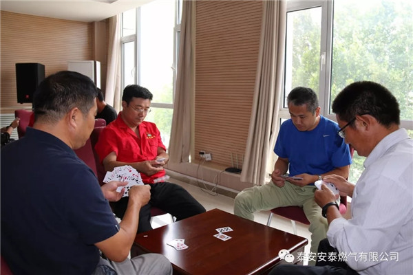 9月14日下午,安泰燃?xì)庠谌龢嵌喙δ軓d舉行撲克比賽。本次活動分夠級、升級兩個比賽項目。工作人員精心籌備,公司員工踴躍參與,公司黨支部書記、常務(wù)副總經(jīng)理佟慶參加活動并為參賽選手們加油助威。