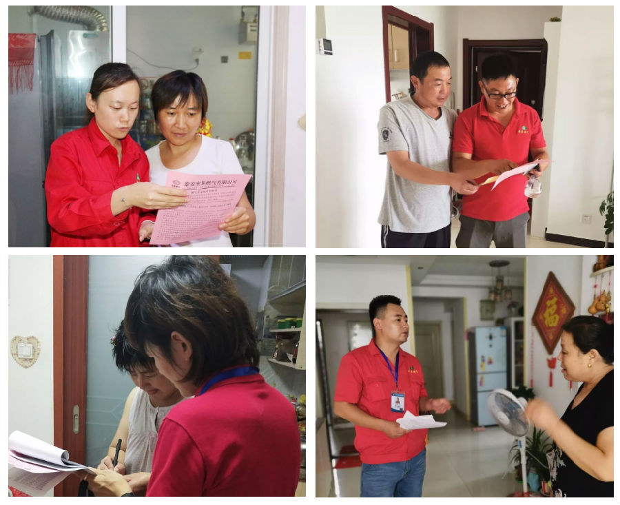 為確保所轄用戶用氣安全,安泰燃?xì)饨Y(jié)合夏季高溫特性,在前期以雙重預(yù)防體系為抓手開展安全隱患排查的基礎(chǔ)上,按照《泰安市城區(qū)城鎮(zhèn)燃?xì)獍踩a(chǎn)專項整治實施方案》,嚴(yán)格落實“七個一遍”、“七個一律”要求,精密部署、周密安排,集中力量、集中時間,組織全員開展居民用戶、工福用戶、燃?xì)夤芫W(wǎng)、輸配站區(qū)的隱患大排查,結(jié)合用戶安全用氣知識的缺乏情況對燃?xì)庥脩暨M(jìn)行了安全知識和應(yīng)急處置的宣傳教育,使這次安檢做到“全覆蓋”、“零遺漏”。