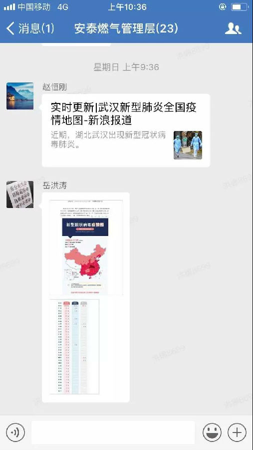 面對新型冠狀病毒疫情的嚴(yán)峻形勢,公司緊急行動,強部署、抓落實,成立“安泰燃?xì)庑滦凸跔畈《痉揽厝骸保瑢訉油苿臃酪吖ぷ骶珳?zhǔn)落實。公司以企業(yè)微信群等形式,發(fā)布主流媒體的相關(guān)疫情訊息及防護常識,做好輿情引導(dǎo),做到不聽謠、不信謠、不傳謠,避免引起恐慌。通過正確信息,引導(dǎo)大家充分認(rèn)識做好新型冠狀病毒防治工作的極端重要性,使大家認(rèn)真了解和掌握科學(xué)預(yù)防的知識和方法,與全國人民一道攜手抗擊疫情。