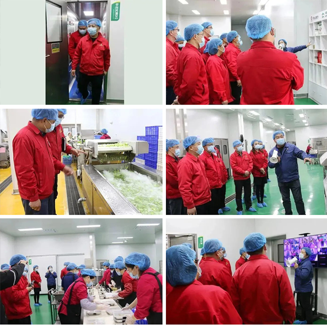 首先,一行人統(tǒng)一換上頭套、鞋套進(jìn)入“風(fēng)淋室”清潔,隨后在食堂工作人員的帶領(lǐng)下依次進(jìn)入中央廚房配餐中心。參觀中大家了解到,配餐中心所有食材均遵循“食以安為天”的原則,建立了嚴(yán)格的食品安全管控體系,統(tǒng)一招標(biāo)采購、統(tǒng)一管理、統(tǒng)一配制,保障了制作、配餐的可追溯性。新的中央廚房生產(chǎn)線采用多種先進(jìn)生產(chǎn)設(shè)備,可實(shí)現(xiàn)原料入庫、加工、包裝、儲(chǔ)存、配送全程實(shí)時(shí)監(jiān)控、批批檢測,從而確保產(chǎn)品質(zhì)量和口感。全新的配餐系統(tǒng)和高標(biāo)準(zhǔn)的加工配送體系,無不體現(xiàn)出硬件上選型上的“高精尖”和服務(wù)著陸上的“軟實(shí)力”,讓大家親眼見識(shí)到食品生產(chǎn)標(biāo)準(zhǔn)化流程的同時(shí),開闊了眼界,也從中深刻體會(huì)到“盡心盡力、盡職盡責(zé)”的深刻含義。
