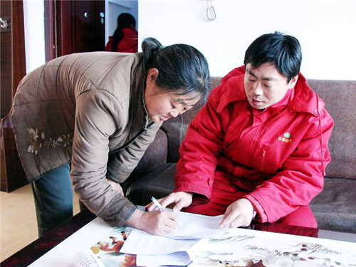 工作人員為小區(qū)居民進(jìn)行送氣登記