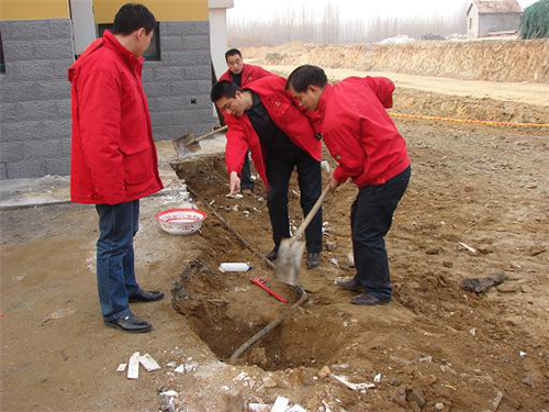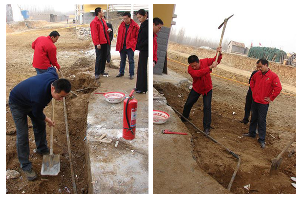 搶修隊(duì)員現(xiàn)場清理作業(yè)帶與公司領(lǐng)導(dǎo)親自上陣開挖工作坑