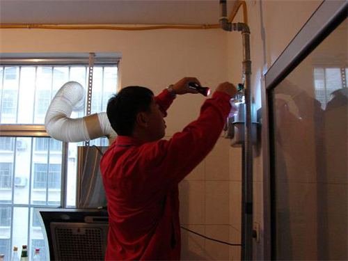 工作人員對燃?xì)獗斫涌谔帣z漏