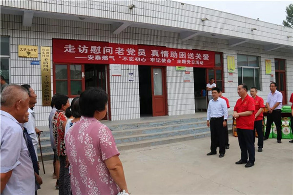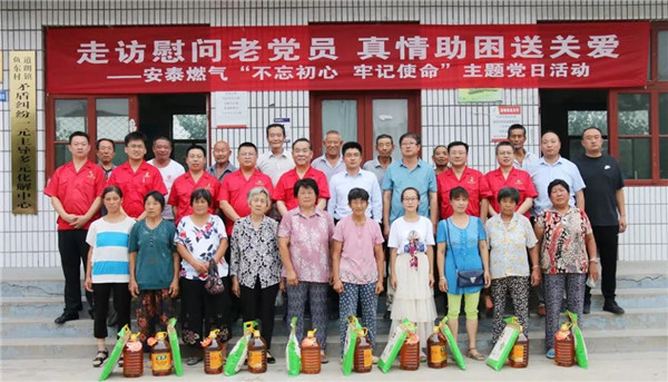 7月25日,泰安安泰燃?xì)庥邢薰鹃_展“不忘初心送關(guān)愛 組織關(guān)懷暖人心”主題黨日活動(dòng)。泰山玻纖黨委委員、副總經(jīng)理、安泰燃?xì)舛麻L趙恒剛帶領(lǐng)公司班子成員、支部委員、黨員骨干分別走進(jìn)滿莊鎮(zhèn)敬老院和道朗鎮(zhèn)魚東村,以實(shí)際行動(dòng)向退伍老黨員做出的貢獻(xiàn)表示敬意,把積極助困的國企社會(huì)責(zé)任和中華民族尊老愛老的傳統(tǒng)美德落到實(shí)處。