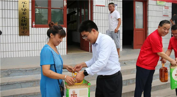 10點(diǎn)鐘,道朗鎮(zhèn)黨委副書記、鎮(zhèn)長李安軍等人與趙恒剛一行與共同為魚東村退伍老黨員和困難群眾送上花生油、大米等慰問品。慰問中,趙恒剛詳細(xì)詢問、了解他們生活中存在的困難和問題,并囑咐他們有困難要告訴公司,以便公司及時(shí)解決他們生活中的難處,現(xiàn)場群眾備受感動(dòng)。同時(shí),一行人走進(jìn)魚東村困難群眾家中,為他們送去生活必需品和誠摯問候。