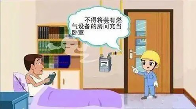 嚴(yán)禁將有燃?xì)庠O(shè)施的房間充當(dāng)臥室居住或臨時(shí)休息,因?yàn)槿绻細(xì)獗?、燃?xì)庠罨蛉細(xì)夤軗p壞泄漏,不易察覺,更有可能引發(fā)爆炸、火災(zāi)等危險(xiǎn)。