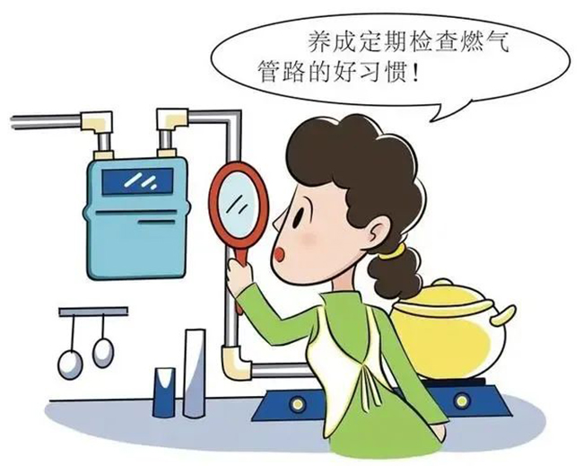 針對(duì)家中燃?xì)庠O(shè)施,要定期進(jìn)行自檢,檢查燃?xì)膺B接管接頭是否有松動(dòng),連接管是否存在老化、損壞現(xiàn)象,如出現(xiàn)以上情況,及時(shí)更換燃?xì)膺B接管(需更換金屬波紋管),確保日常用氣安全。天然氣本身是一種無色無味的氣體,經(jīng)過加臭處理后,氣體具有臭雞蛋味,一般人可以靠嗅覺識(shí)別。如果聞到這類氣味,可使用洗潔精水涂抹管道各接口及連接處進(jìn)行自檢,如有泡泡連續(xù)冒出,立即開窗通風(fēng),并關(guān)閉表前閥門,不得開關(guān)任何電器,并到室外撥打燃?xì)夤緢?bào)警電話。