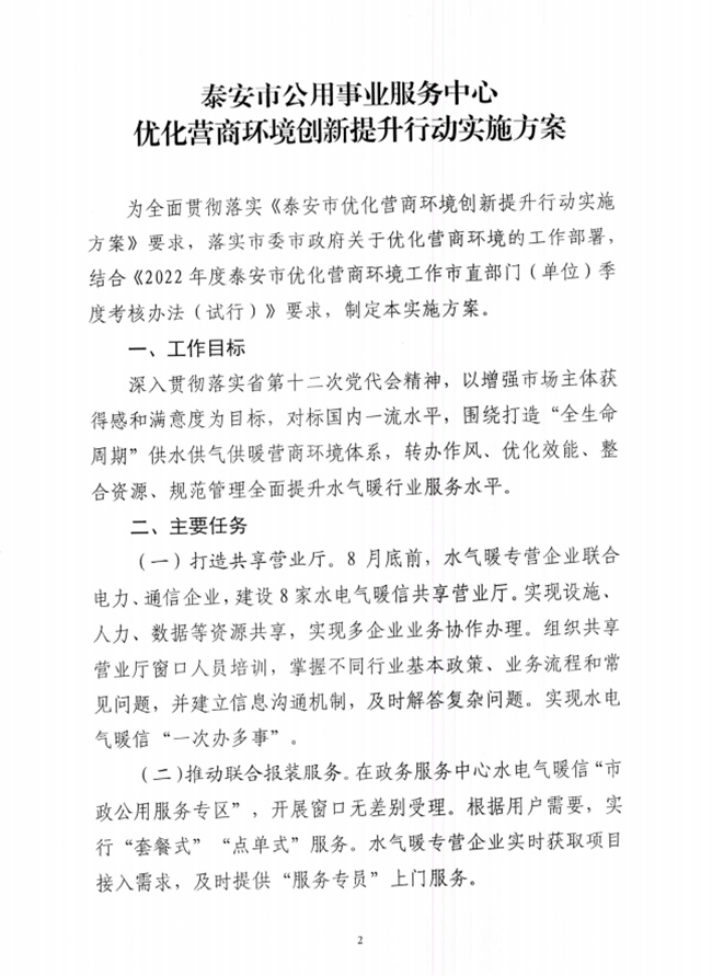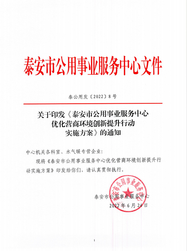 關(guān)于印發(fā)《泰安市公用事業(yè)服務(wù)中心優(yōu)化營商環(huán)境創(chuàng)新提升行動(dòng)實(shí)施方案》的通知